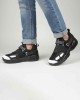 | 👟 Design | Sleek black sneakers with white toe accents and modern strap closure for a bold urban look |