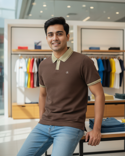 Calvin Klein Brown Ribbed Polo T-Shirt for Men – Comfort Fit Casual Wear | ComfortsBD #1001-2