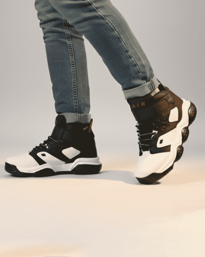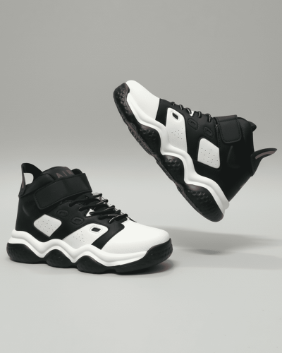Step up your streetwear game with the Men’s Black & White AIR High-Top Sneakers from ComfortsBD. These modern sneakers blend performance, comfort, and bold style — perfect for urban wear or casual outings. Crafted from durable synthetic leather with a breathable mesh lining, they feature a cushioned midsole and a high-traction rubber outsole for all-day comfort. The high-ankle design with a secure strap ensures extra support and a confident fit.