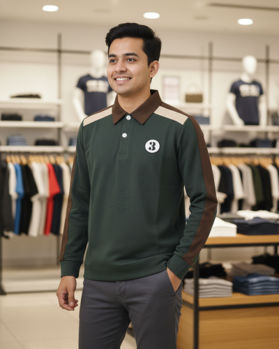 Men’s Full Sleeve Polo Shirt – Contrast Shoulder Design | ComfortsBD #1005-1