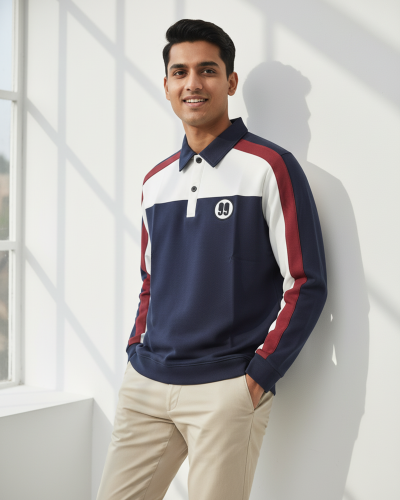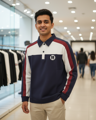 Men’s Navy White 99 Colorblock Sweatshirt – Long Sleeve Polo | ComfortsBD #1005-3