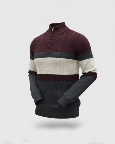 Men’s Stylish Half-Zip Color Block Knitted Sweater – 5 Colors | ComfortsBD #1006